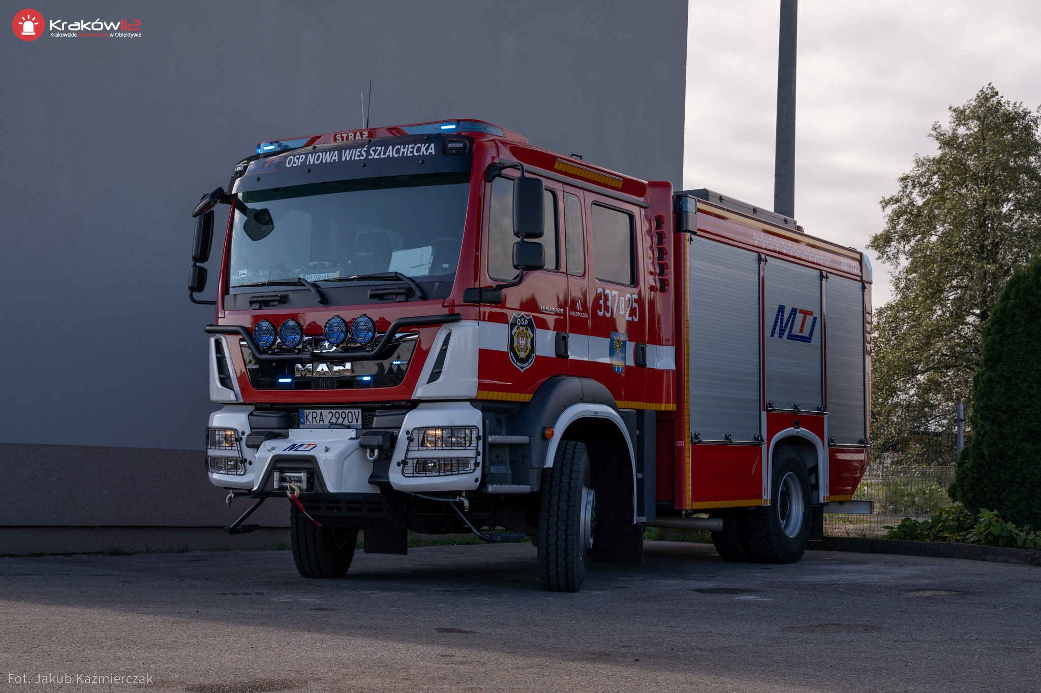 Ochotnicza Straż Pożarna w Nowej Wsi Szlacheckiej została założona w 1921 roku. Jest jednostką typu S-4, nie będąca w strukturach Krajowego Systemu Ratowniczo-Gaśniczego. Pierwszym pojazdem gaśniczym jednostki był Star 25, który w 1998 roku został zastąpiony przez Jelcza 004 przekazanego z Komendy Miejskiej PSP w Krakowie. Jelcz służył w jednostce aż do roku 2021, w międzyczasie przechodząc modernizację i karosację. 30 stycznia 2021 roku zastąpił go nowoczesny GCBARt 4,6/29 na podwoziu MAN TGM. W 2019 roku jednostka wzbogaciła się o swój pierwszy fabrycznie nowy pojazd - lekki samochód gaśniczy na podwoziu Opla Movano, który dołączył do ciężkiego Jelcza. W październiku 2022 roku do floty dołączył kwatermistrzowski Star 266, pozyskany z Komendy Powiatowej PSP w Oświęcimiu. Pojazd ten wcześniej służył w JRG Oświęcim pod kryptonimem 511[K]81.Kolejnym pojazdem, który zasilił jednostkę, było Mitsubishi Pajero - lekki samochód ratowniczo-rozpoznawczy pozyskany we wrześniu 2023 roku z KM PSP w Krakowie. Wcześniej służył jako 300[K]90, "działając" wraz z oficerem operacyjnym podczas najtrudniejszych zdarzeń na terenie miasta. W 2023 roku jednostka otrzymała także quada przekazanego przez Szkołę Aspirantów PSP w Krakowie. Jednostka dysponuje również wojskową kuchnią polową.