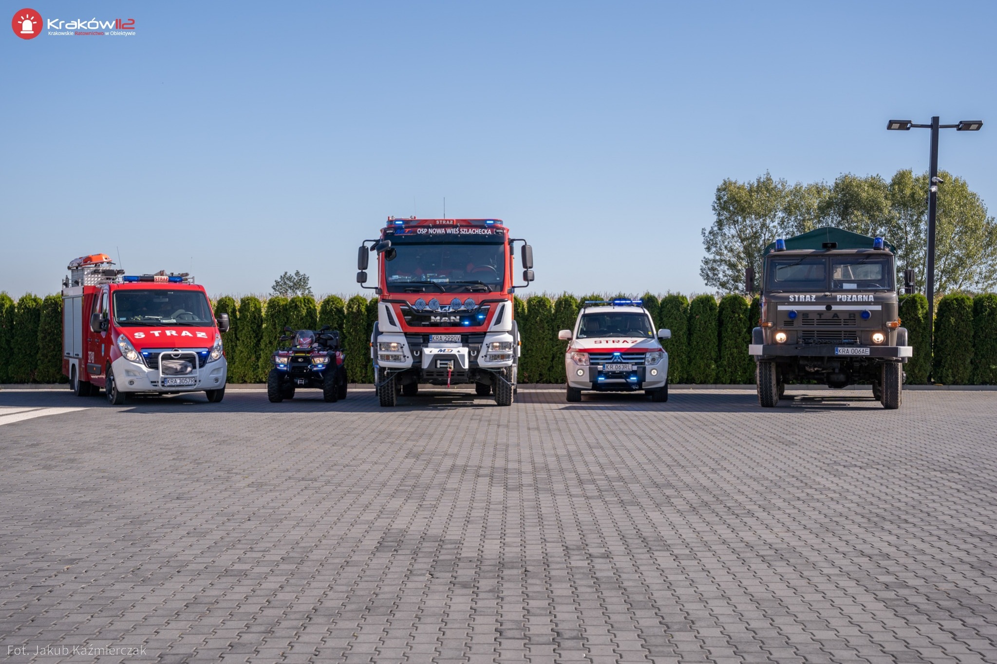 Ochotnicza Straż Pożarna w Nowej Wsi Szlacheckiej została założona w 1921 roku. Jest jednostką typu S-4, nie będąca w strukturach Krajowego Systemu Ratowniczo-Gaśniczego. Pierwszym pojazdem gaśniczym jednostki był Star 25, który w 1998 roku został zastąpiony przez Jelcza 004 przekazanego z Komendy Miejskiej PSP w Krakowie. Jelcz służył w jednostce aż do roku 2021, w międzyczasie przechodząc modernizację i karosację. 30 stycznia 2021 roku zastąpił go nowoczesny GCBARt 4,6/29 na podwoziu MAN TGM. W 2019 roku jednostka wzbogaciła się o swój pierwszy fabrycznie nowy pojazd - lekki samochód gaśniczy na podwoziu Opla Movano, który dołączył do ciężkiego Jelcza. W październiku 2022 roku do floty dołączył kwatermistrzowski Star 266, pozyskany z Komendy Powiatowej PSP w Oświęcimiu. Pojazd ten wcześniej służył w JRG Oświęcim pod kryptonimem 511[K]81.Kolejnym pojazdem, który zasilił jednostkę, było Mitsubishi Pajero - lekki samochód ratowniczo-rozpoznawczy pozyskany we wrześniu 2023 roku z KM PSP w Krakowie. Wcześniej służył jako 300[K]90, "działając" wraz z oficerem operacyjnym podczas najtrudniejszych zdarzeń na terenie miasta. W 2023 roku jednostka otrzymała także quada przekazanego przez Szkołę Aspirantów PSP w Krakowie. Jednostka dysponuje również wojskową kuchnią polową.
