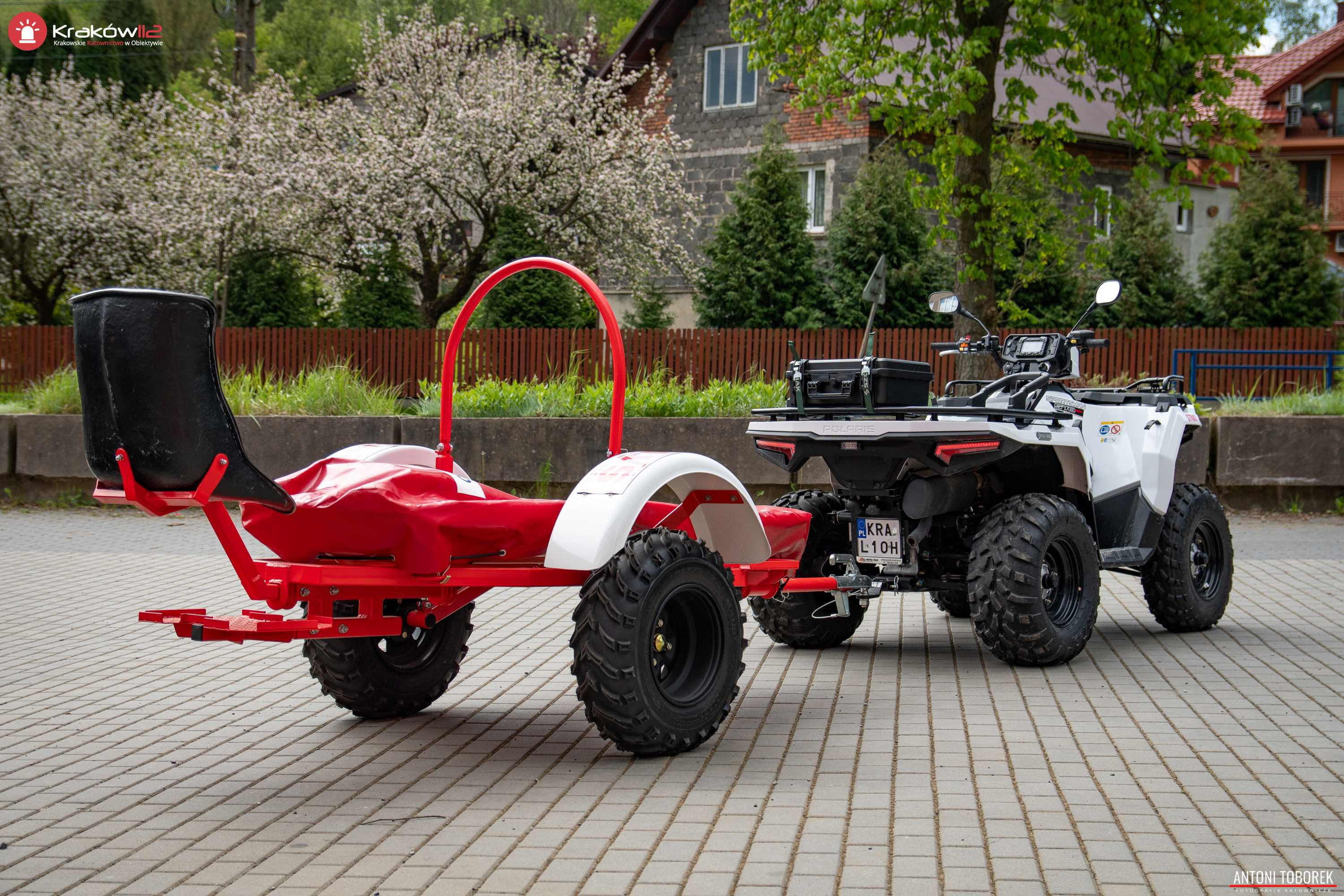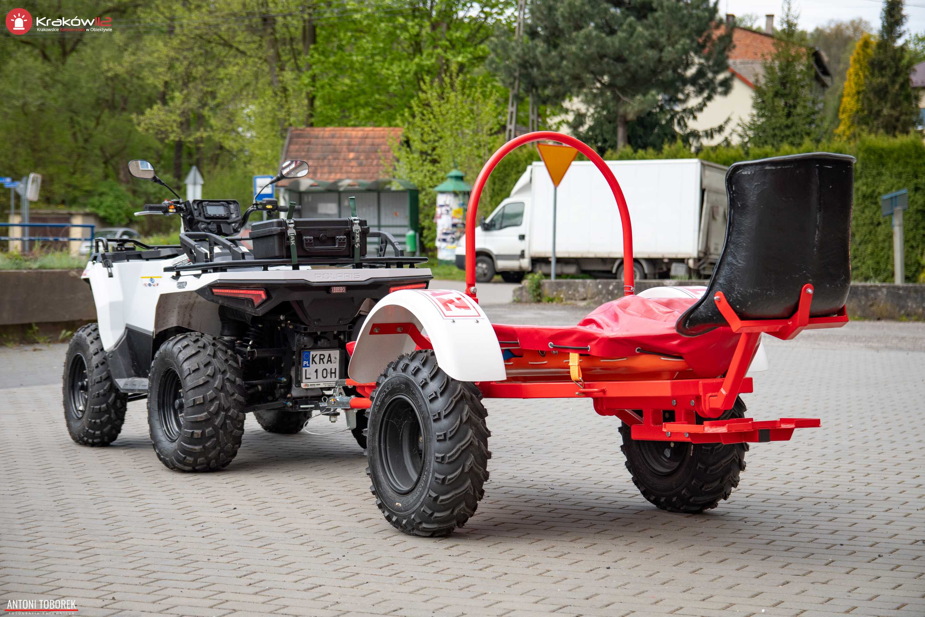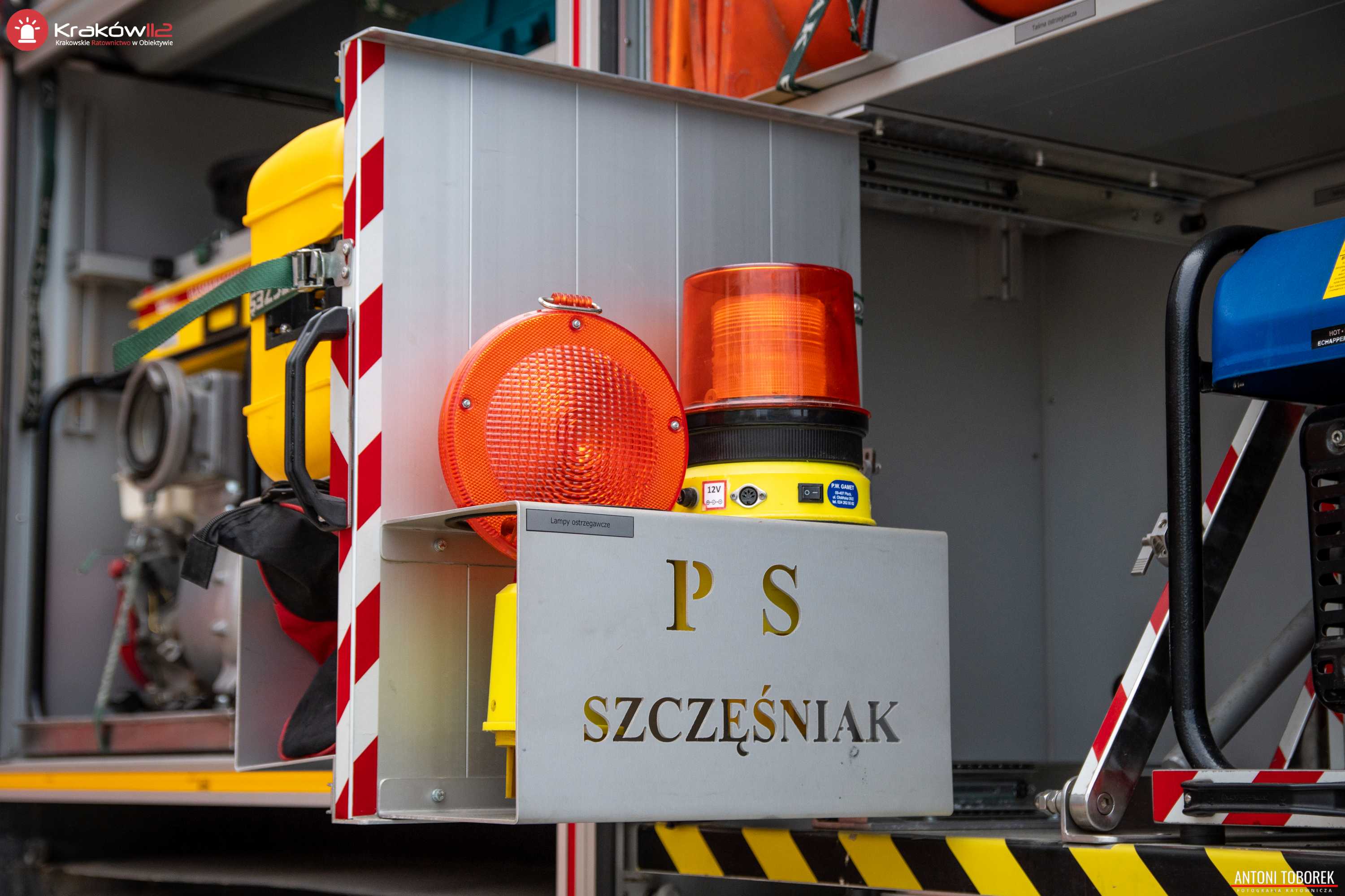 Przyczepka została pozyskana w 2020 roku w ramach Małopolskiej Tarczy Antykryzysowej. Na jej wyposażeniu znajduje się m.in: namiot stelażowy, 10 łóżek, 10 śpiworów, 10 krzeseł, stolik, nagrzewnica olejowa, agregat prądotwórczy, sprzęt oświetleniowy i inne akcesoria.Zdjęcia OSP: